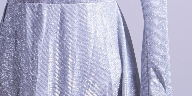 We would have loved to make the whole leotard dress from just the glitter fabric, but we had to compromise. So we used the glitter fabric for the front, sleeves and skirt, and decided to make the bottom and the back of the leotard, with regular white lycra to give the needed support, without ruining the look. We kept an open seam on the right side of the skirt for movement. This dress was really one of the highlights of the show.