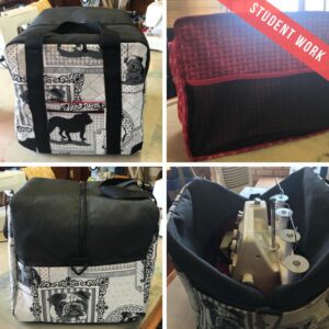 Printable PDF padded overlocker / serger carry bag pattern with 10 pockets.